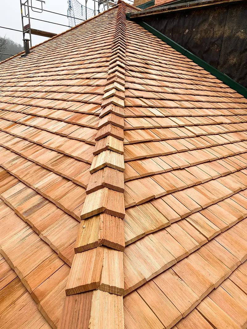 Lärchenschindel Holzdeckung (Doppeldeckung)
